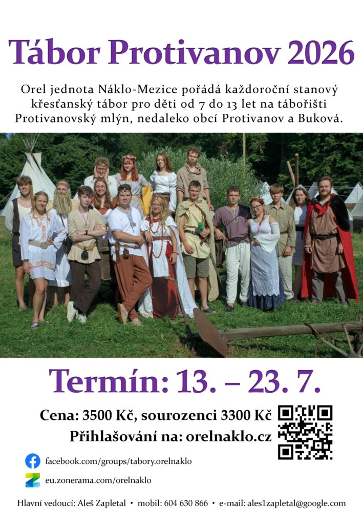 Tábor proběhne na tábořišti Protivanovský mlýn, nedaleko obcí Protivanov a Buková, v termínu 13. 7. – 23. 7. 2026. Tábor je především pro děti z farností Náklo, Pňovice a Skrbeň, ale toto není podmínkou.