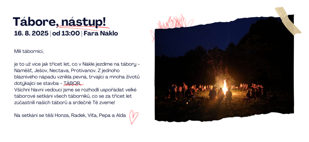Velké společné setkání všech táborníků se blíží mílovými kroky, realizační tým se pravidelně schází a vám tak přinášíme nejnovější informace.